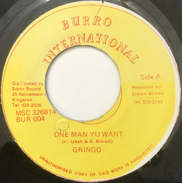 One Man Yu Want / Version | Gringo | Burro International | 7 | Used | In stock | EUR 6.95 | BuyReggae |