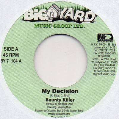 My Decision / Version | Bounty Killer, Christopher Birch | Big Yard Music Group Ltd. / Vp Records | 7 | Used | In stock | EUR 4.95 | BuyReggae |