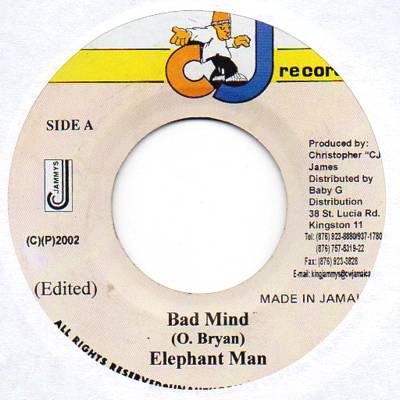 Bad Mind / Radio Mix | Elephant Man | Cj Records | 7 | Used | In stock | EUR 3.95 | BuyReggae |
