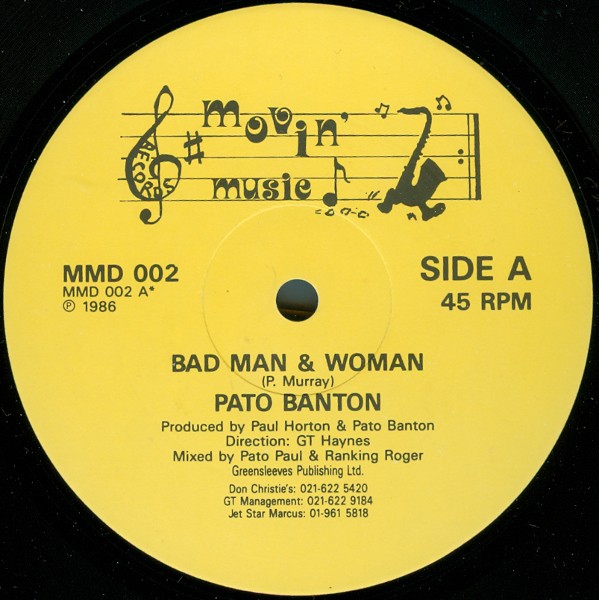Bad Man & Woman / Bad Man & Woman (Dub Mix) | Pato Banton | Movin' Music | 12 | Used | In stock | EUR 4.95 | BuyReggae |