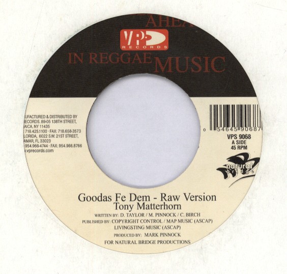 Goodas Fe Dem / Radio Mix | Tony Matterhorn | Vp / Natural Bridge | 7 | Used | In stock | EUR 3.95 | BuyReggae |
