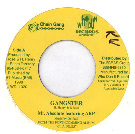 Gangster / Acapella Version | Mr. Absolute, A.R.P. | Who Dun It Records | 7 | Used | In stock | EUR 9.95 | BuyReggae |