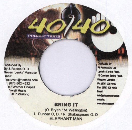 Bring It / Nuh Fraid A Dem | Elephant Man, General Degree | 40/40 Productions | 7 | Used | In stock | EUR 4.95 | BuyReggae |