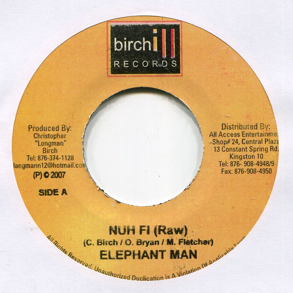 Nuh Fi / Radio Edit | Elephant Man | Birchill Records | 7 | Used | In stock | EUR 3.95 | BuyReggae |