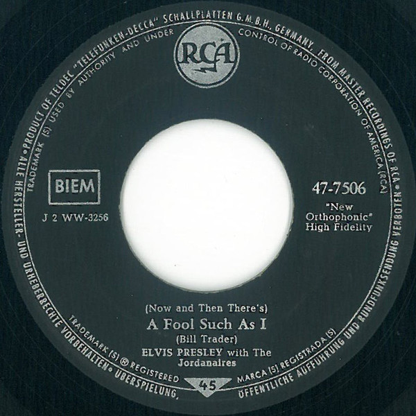 I Need Your Love Tonight / (Now And Then There's) A Fool Such As I | Elvis Presley, The Jordanaires | Rca | 7 | Used | In stock | EUR 3.95 | BuyReggae |