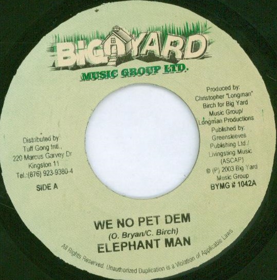 We No Pet Dem / Sick Head | Elephant Man, Ward 21 | Big Yard Music Group Ltd. | 7 | Used | In stock | EUR 3.95 | BuyReggae |