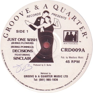 Just One Wish | Decisions Featuring Sinclair | Groove & A Quarter Records | 12 | G+ | In stock | EUR 7.99 | HHV |