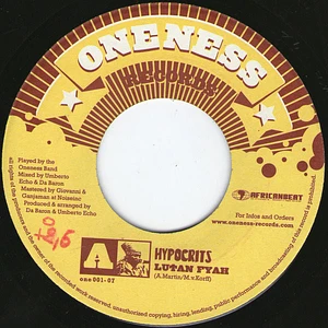 Hypocrits / Tears Of Happiness Lutan Fyah / Jahcoustix Oneness 7 VG In stock EUR 3.99 HHV