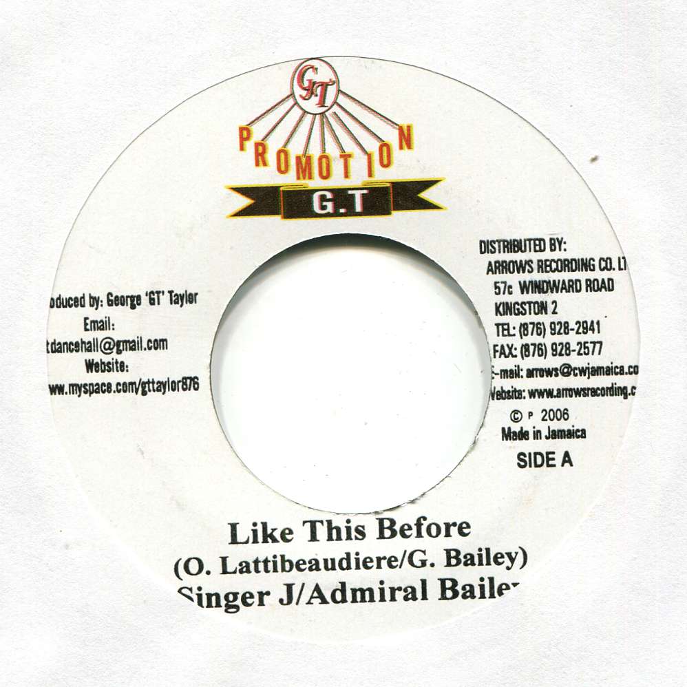 Like This Before / Version | Admiral Bailey, Singer J | G.t Promotion | 7 | Mint | In stock | EUR 3.95 | BuyReggae |