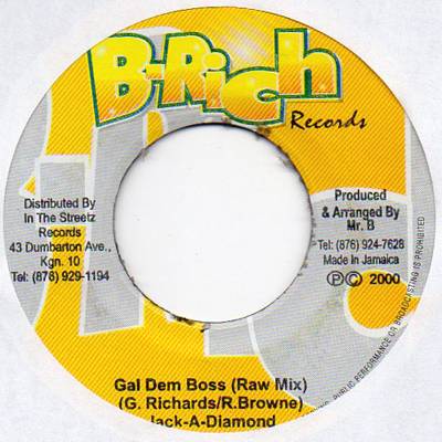 Gal Dem Boss / Radio Mix | Jack A Diamond | B-Rich Records | 7 | Mint | In stock | EUR 3.95 | BuyReggae |