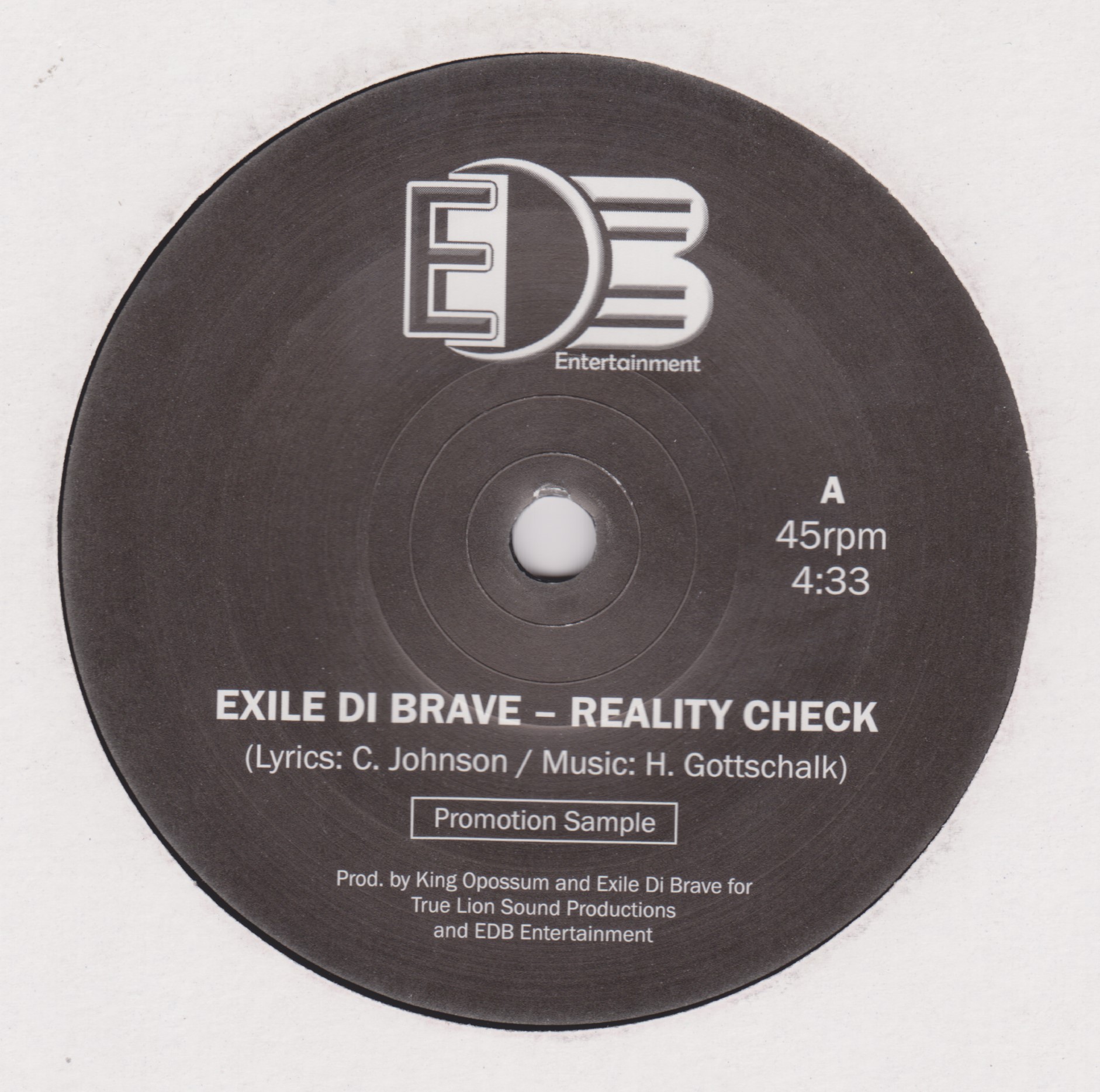 Reality Check (300 Limited) / Roots Up Riddim | Exile Di Brave, King Opossum | E. D. B. Entertainment | 7 | Used | In stock | EUR 6.95 | BuyReggae |