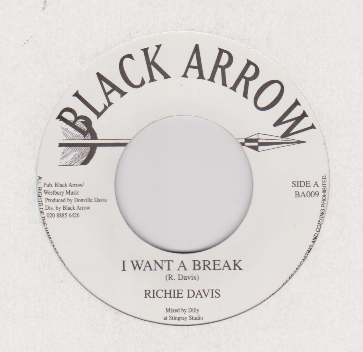 I Want A Break / I Want A Break Version | Richie Davis | Black Arrow Records | 7 | Used | In stock | EUR 4.95 | BuyReggae |